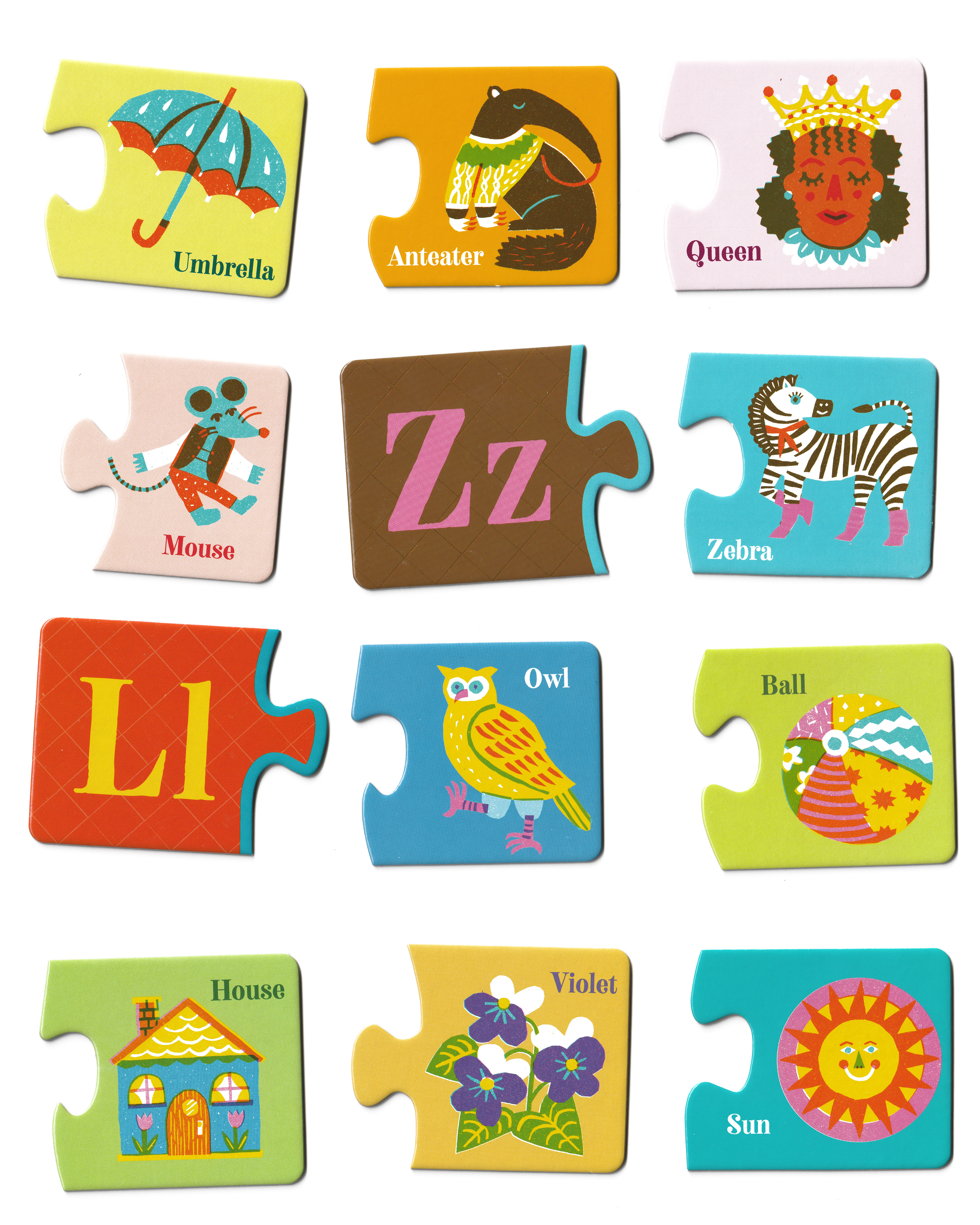 I illustrated for the set of ABC puzzles by EeBoo, the NYC based educational toy company which has been developing award-winning early learning games, children's puzzles, and activities. Package was designed by EeBoo.