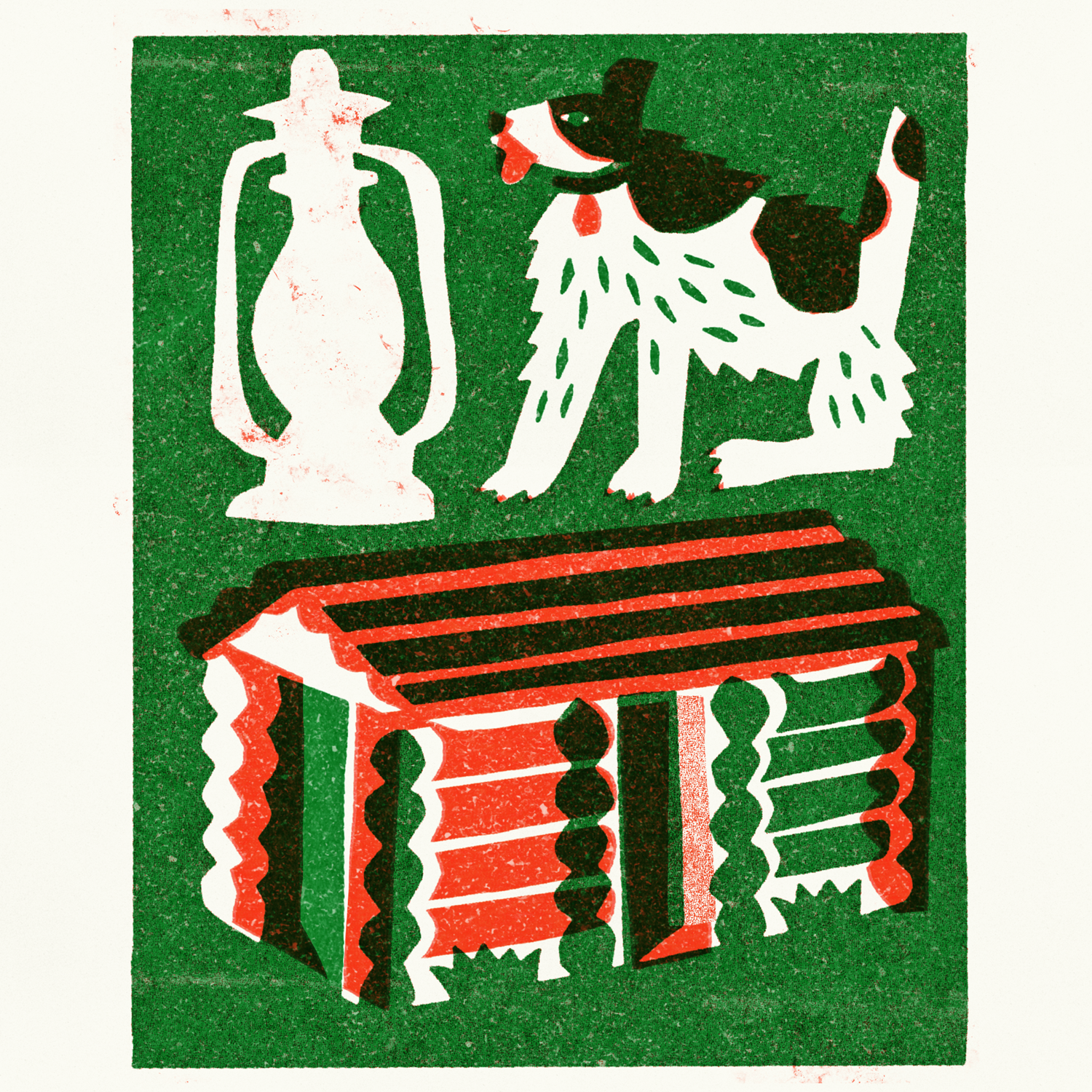 Midwestern summer at cabin inspired stamp illustration
