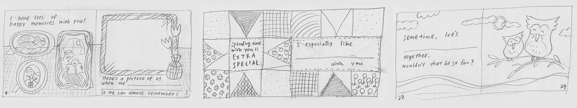 Initial sketches for the spreads